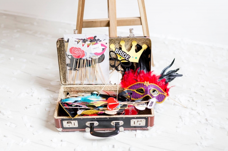 Tolle Fotohintergründe, sowie ein großer Koffer voller lustiger Requisiten stehen zur Verfügung.